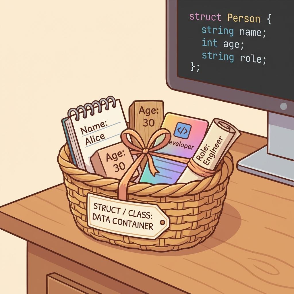 배열이 '동일한 타입'의 데이터 집합이라면, 구조체는 정수, 실수, 문자열 등 다양한 타입을 한 바구니에 담을 수 있다는 점이 강력한 특징입니다. 예를 들어 '학생'이라는 구조체 안에 이름(string), 학번(int), 성적(float)을 모두 포함시킬 수 있습니다.